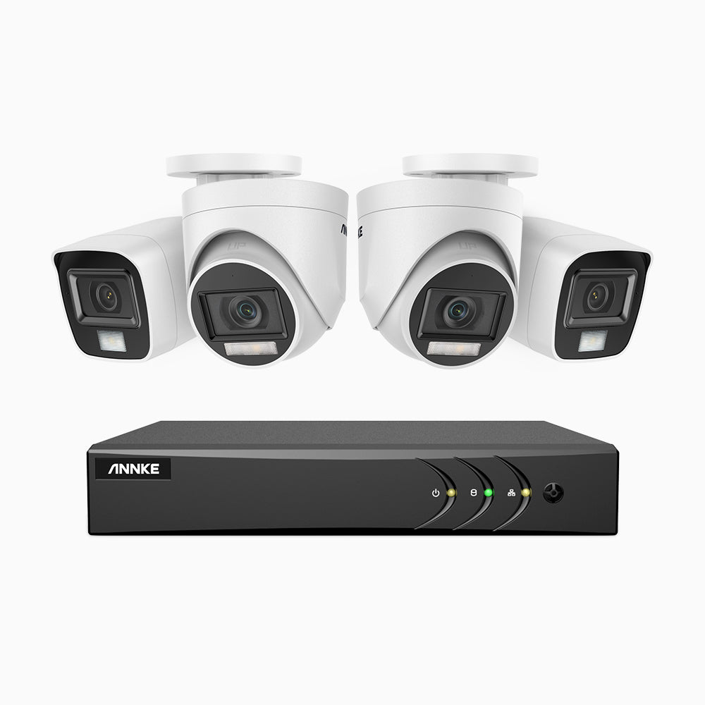 ADLK200 - Kit de vigilancia 1080p con 2 cámaras bullet y 2 cámaras domo y grabador de 8 canales, Doble Luz Visión Nocturna, señal de salida 4 en 1, micrófono incorporado, resistente a la intemperie IP67