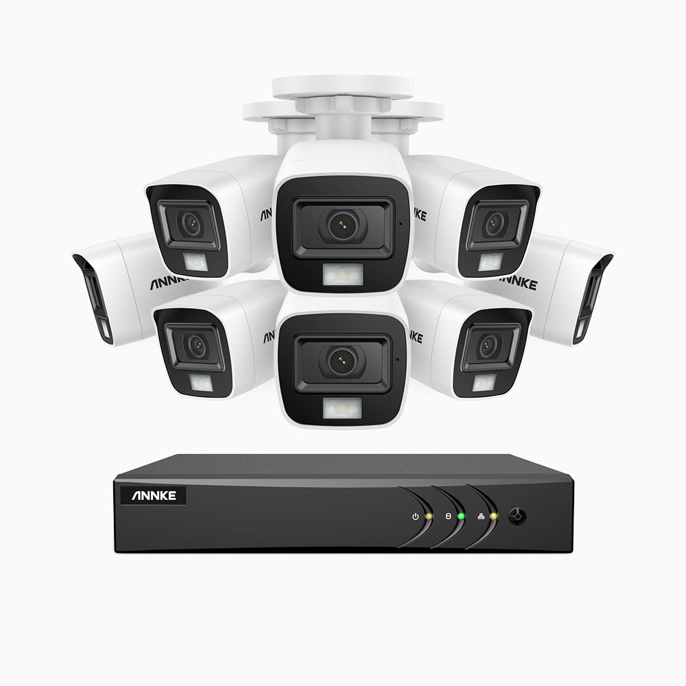 ADLK500 - Kit de 8 cámaras de vigilancia 3K con grabador de 16 canales, Doble Luz Visión Nocturna, Apertura Superficial f/1.2, Señal de Salida 4 en 1, Micrófono Incorporado, IP67 Resistente al Clima
