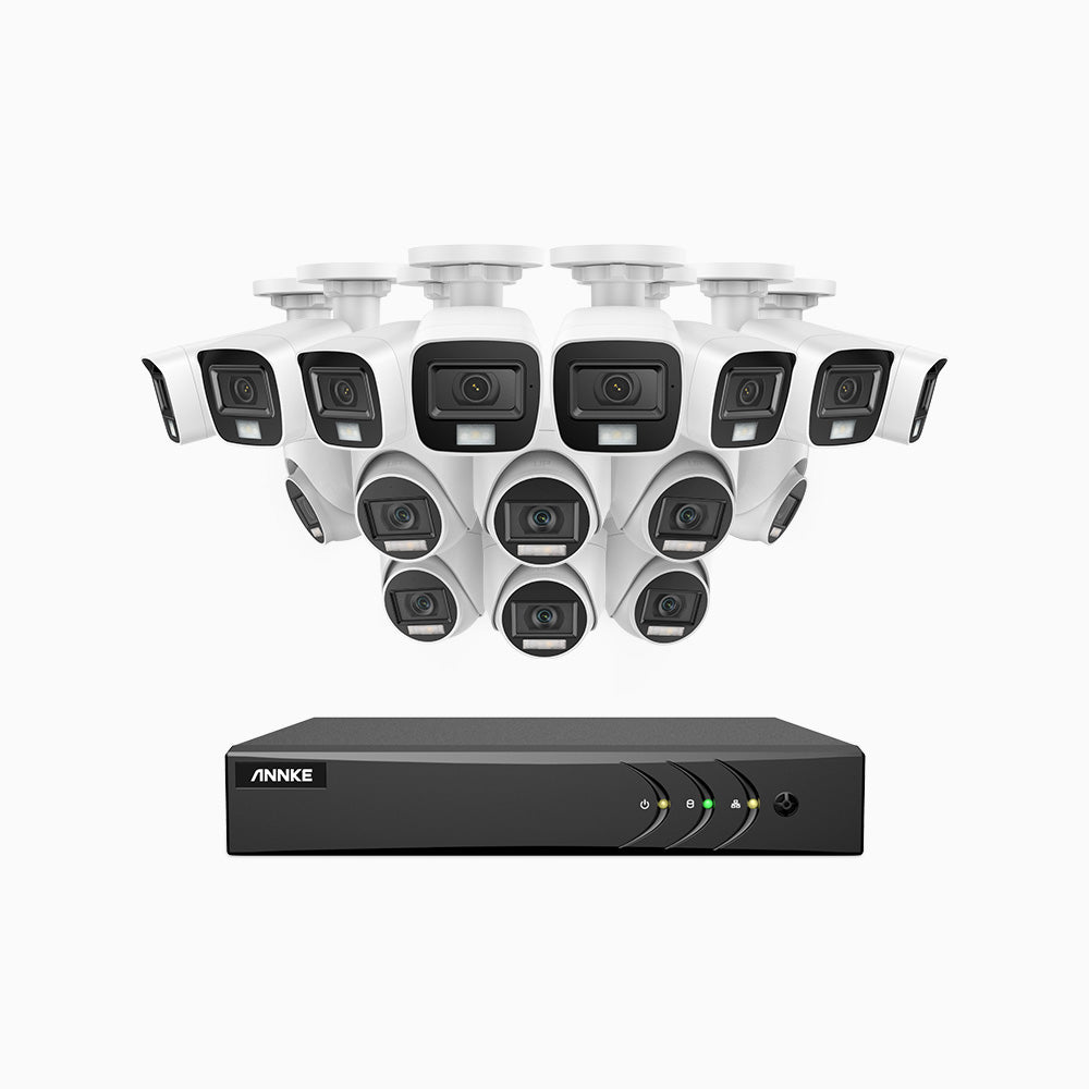 ADLK500 - Kit de vigilancia 3K con 8 cámaras bullet y 8 cámaras domo y grabador de 16 canales, Doble Luz Visión Nocturna, Apertura Superficial f/1.2, Señal de Salida 4 en 1, Micrófono Incorporado, IP67 Resistente al Clima