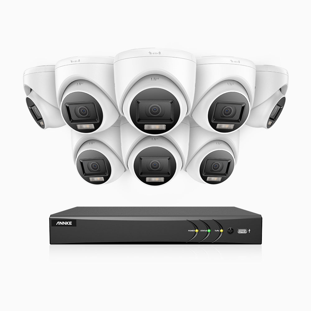 En el modo de luz dual inteligente predeterminado, la cámara puede encontrar claramente el objetivo por la noche con luz infrarroja. Si hay un objetivo en movimiento, la luz blanca se encenderá y la infrarroja se apagará, para obtener una imagen en color clara. Además, también puedes elegir el modo de luz infrarroja completa o luz blanca completa. La iluminación infrarroja alcanza hasta 25 m, y la distancia de la luz blanca es de hasta 20 m para una imagen nocturna brillante.