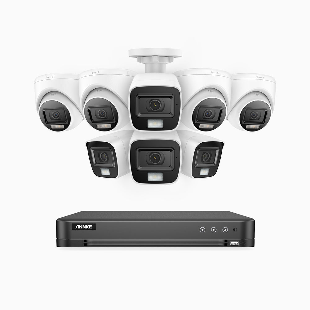 ADLK800 - Kit de 4 cámara bullet y 4 cámara domo y de vigilancia 4K con grabador de 16 canales, Doble Luz Visión Nocturna, 3840x2160@20fps, Apertura Superficial f/1.6, Señal de Salida 4 en 1, IP67