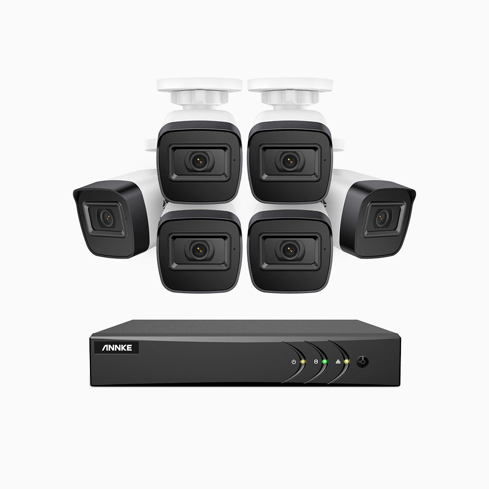EL200 - Kit de 6 cámaras de vigilancia 1080p con grabador de 8 canales, DVR inteligente con detección de humanos y vehículos, visión nocturna por infrarrojos de 20 metros, señal de salida 4-en-1, IP67