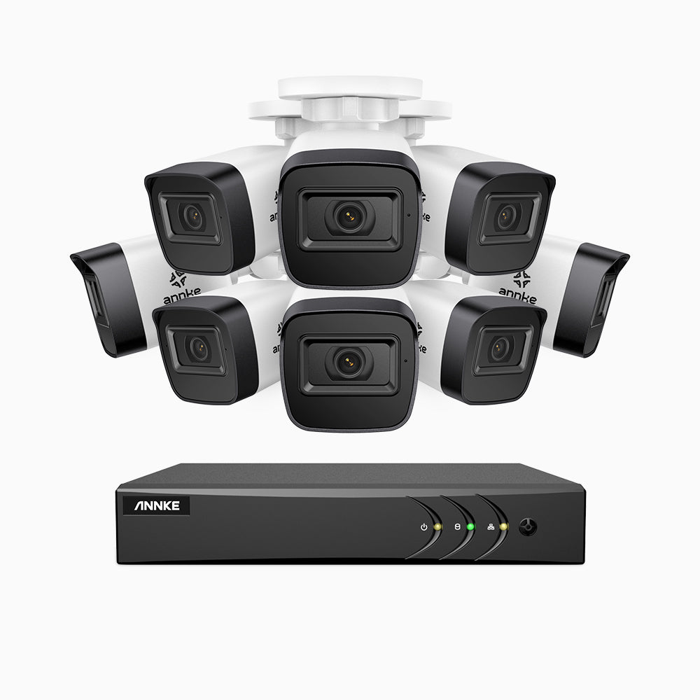 EL200 - Kit de 8 cámaras de vigilancia 1080p con grabador de 16 canales, DVR inteligente con detección de humanos y vehículos, visión nocturna por infrarrojos de 20 metros, señal de salida 4-en-1, IP67