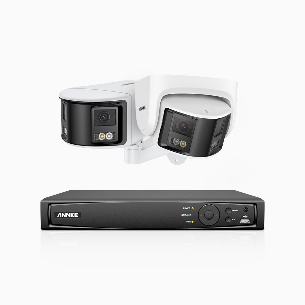 FDH600 - Kit de vigilancia PoE de 4K con 1 cámara bullet y 1 cámaras domo y videograbador NVR de 8 canales, panorámica doble lente, visión nocturna en color, detección de humanos y vehículos, micrófono incorporado