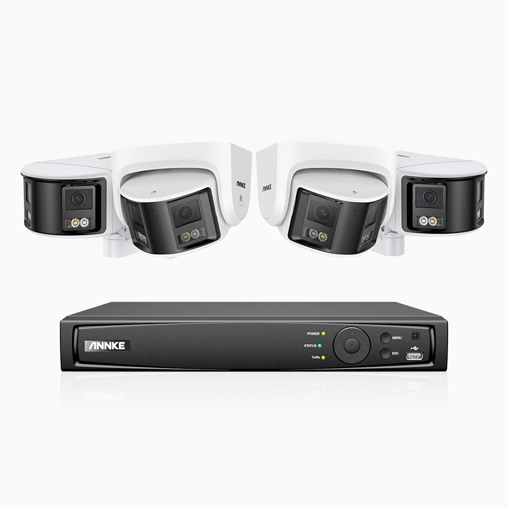 FDH600 - Kit de vigilancia PoE de 4K con 2 cámara bullet y 2 cámaras domo y videograbador NVR de 8 canales, panorámica doble lente, visión nocturna en color, detección de humanos y vehículos, micrófono incorporado