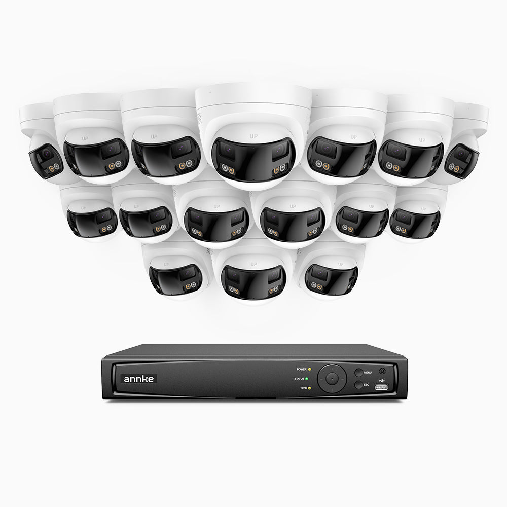 FDH800 - Kit de 16 cámaras de vigilancia PoE de 4K con videograbador NVR de 16 canales, panorámica doble lente, visión nocturna inteligente con doble luz, audio bidireccional, sirena y alarma activas, detección de personas y vehículos, IP67