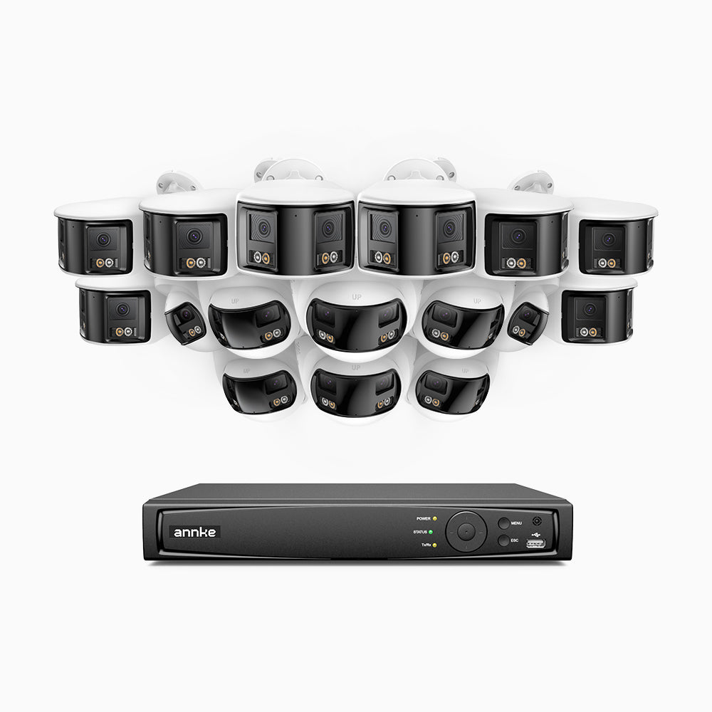 FDH800 - Kit de vigilancia PoE de 4K con 8 cámara bullet y 8 cámaras domo y videograbador NVR de 16 canales, panorámica doble lente, visión nocturna inteligente con doble luz, audio bidireccional, detección de personas y vehículos, IP67