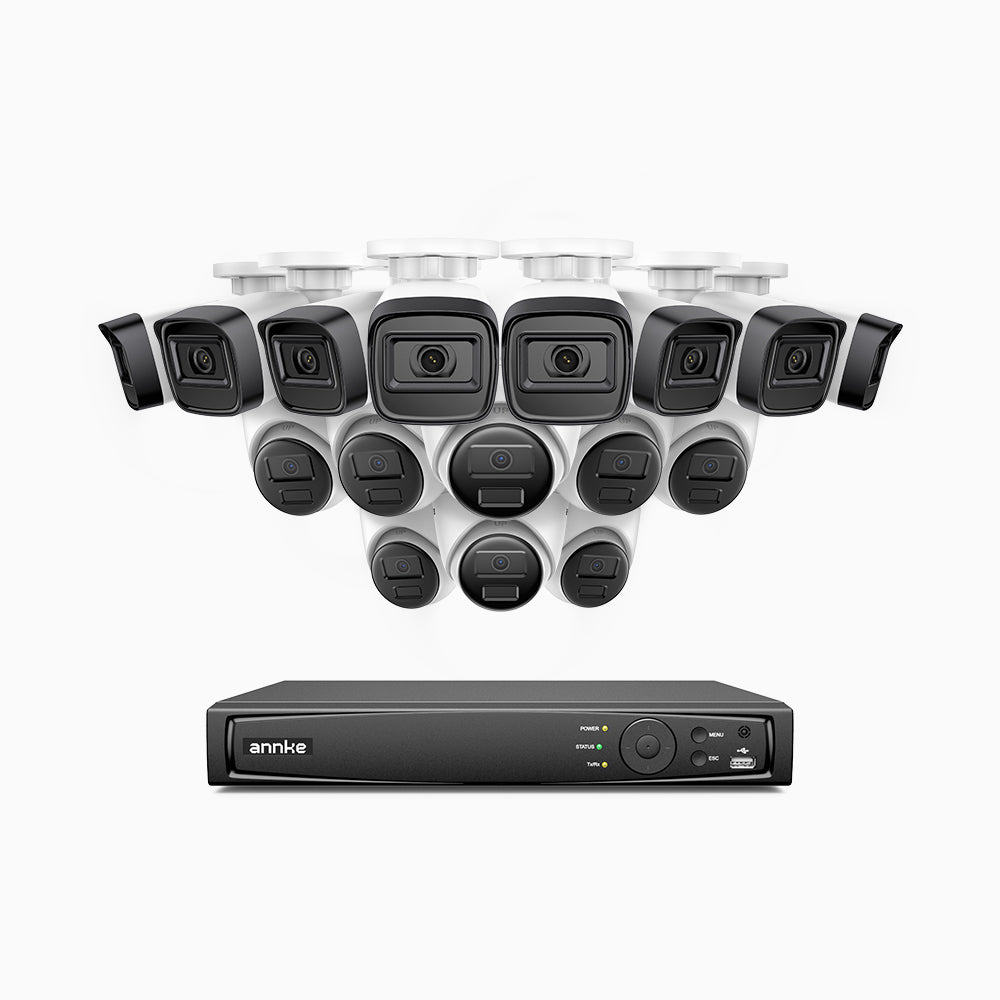 H300 - Kit de vigilancia PoE de 3MP con 8 cámaras bullet y 8 cámaras domo y videograbador NVR de 16 canales, visión nocturna EXIR 2.0, detección de movimiento, H.265+, impermeabilidad IP67