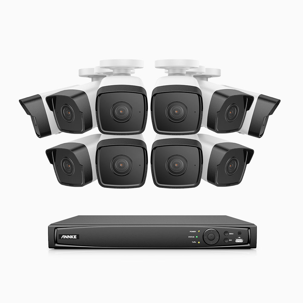 H500 - Kit de 10 cámaras de vigilancia PoE de 3K con videograbador NVR de 16 canales, EXIR Visión Nocturna, micrófono integrado, compatibile con Alexa