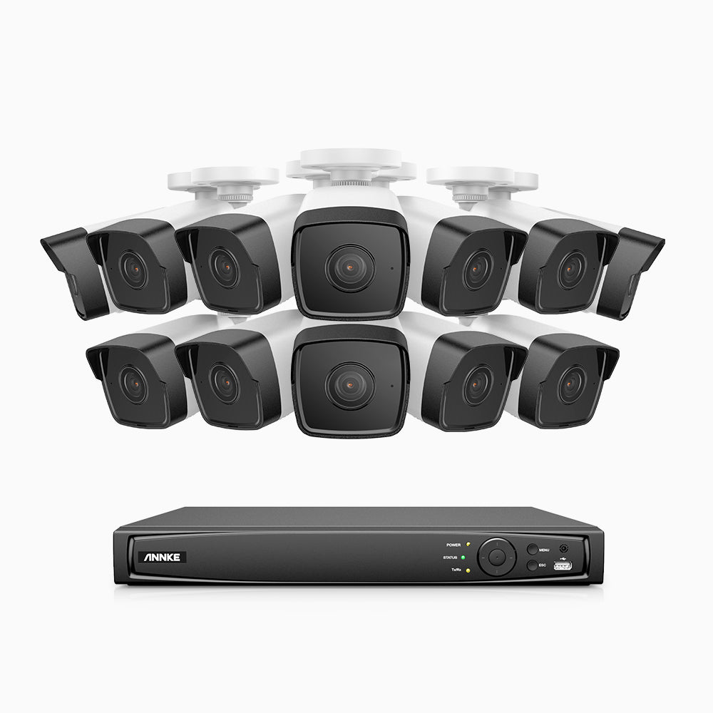 H500 - Kit de 12 cámaras de vigilancia PoE de 3K con videograbador NVR de 16 canales, EXIR Visión Nocturna, micrófono integrado, compatibile con Alexa