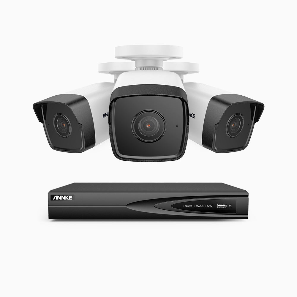 H500 - Kit de 3 cámaras de vigilancia PoE de 3K con videograbador NVR de 4 canales, EXIR Visión Nocturna, micrófono integrado, compatibile con Alexa