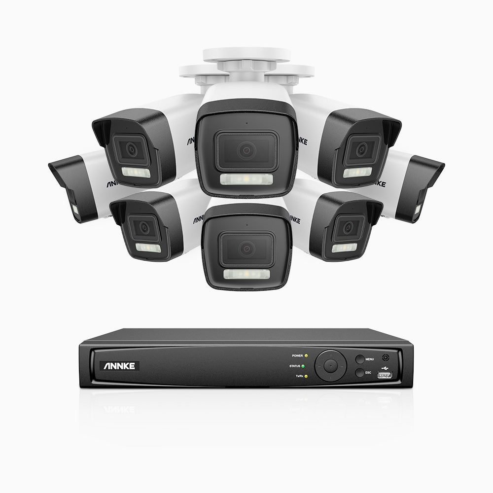 H500P - Kit de 8 cámaras de vigilancia PoE de 3K con videograbador NVR de 16 canales, Resolución 3072*1728, Apertura f / 1.6 (0.005 Lux), Detección de humanos y vehículos, Micrófono incorporado, IP67