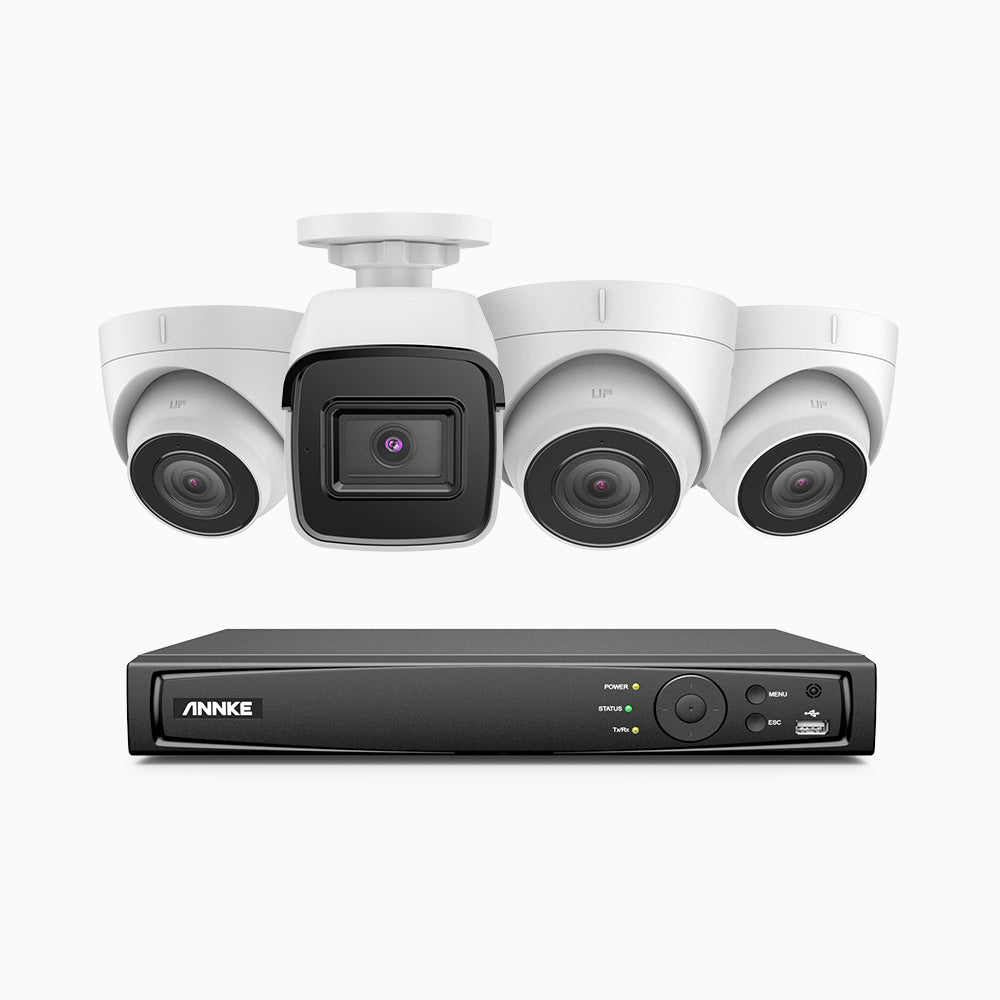 H800 - Kit de vigilancia PoE 4K con 1 cámara bullet y 3 cámara domo y videograbador NVR de 8 canales, Visión nocturna a color e infrarrojos, detección de humanos y vehículos, micrófono integrado, ángulo de visión 96º