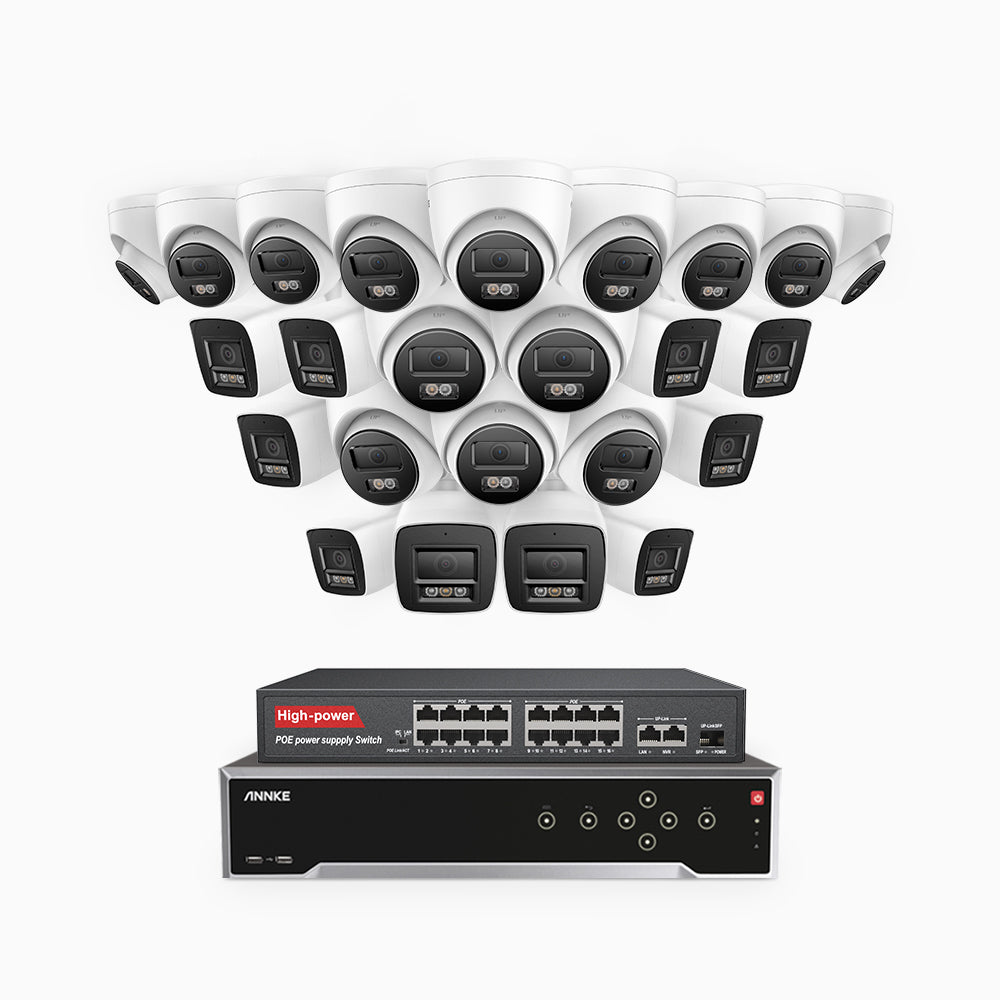 H800 - Kit de vigilancia PoE 4K con 10 cámaras bullet y 14 cámaras domo y videograbador NVR de 32 canales, Visión nocturna a color e infrarrojos, detección de humanos y vehículos, micrófono integrado, ángulo de visión 96º
