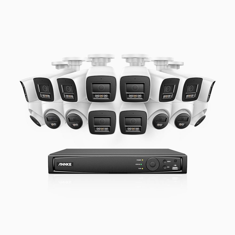 H800 - Kit de vigilancia PoE 4K con 10 cámaras bullet y 6 cámaras domo y videograbador NVR de 16 canales, Visión nocturna a color e infrarrojos, detección de humanos y vehículos, micrófono integrado, ángulo de visión 96º
