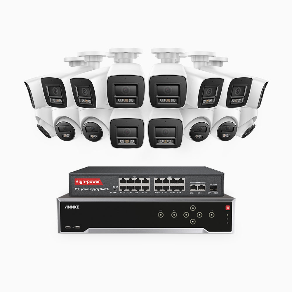 H800 - Kit de vigilancia PoE 4K con 10 cámaras bullet y 6 cámaras domo y videograbador NVR de 32 canales, Visión nocturna a color e infrarrojos, detección de humanos y vehículos, micrófono integrado, ángulo de visión 96º