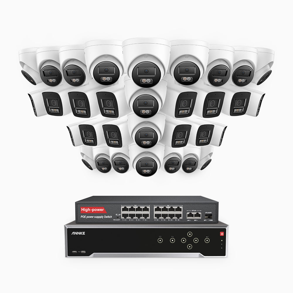 H800 - Kit de vigilancia PoE 4K con 14 cámaras bullet y 18 cámaras domo y videograbador NVR de 32 canales, Visión nocturna a color e infrarrojos, detección de humanos y vehículos, micrófono integrado, ángulo de visión 96º