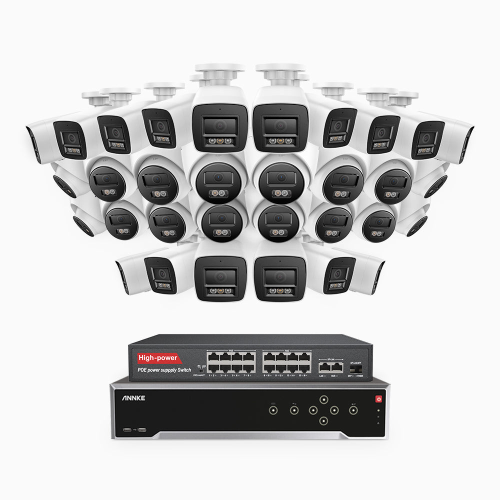 H800 - Kit de vigilancia PoE 4K con 16 cámaras bullet y 16 cámaras domo y videograbador NVR de 32 canales, Visión nocturna a color e infrarrojos, detección de humanos y vehículos, micrófono integrado, ángulo de visión 96º