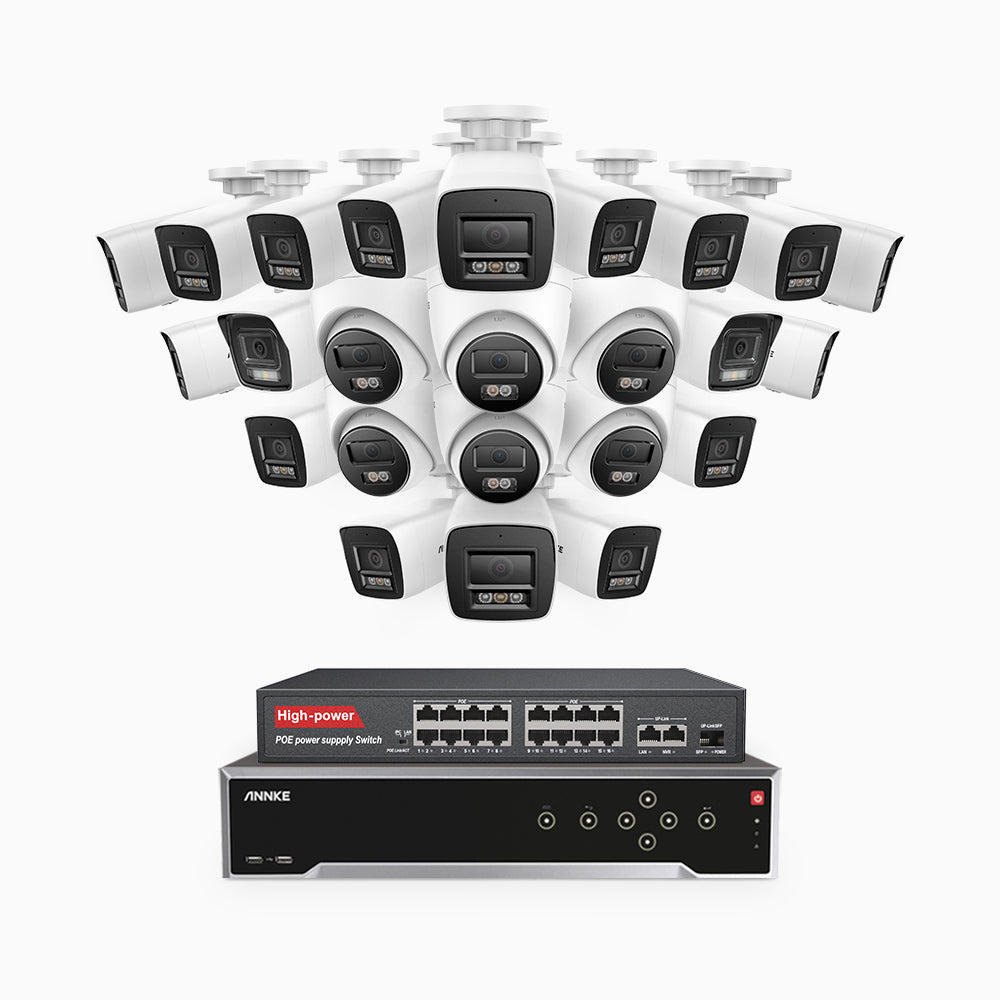 H800 - Kit de vigilancia PoE 4K con 18 cámaras bullet y 6 cámaras domo y videograbador NVR de 32 canales, Visión nocturna a color e infrarrojos, detección de humanos y vehículos, micrófono integrado, ángulo de visión 96º