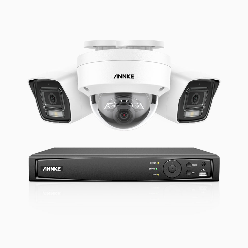 H800 - Kit de vigilancia PoE 4K con 2 cámara bullet y 1 cámara domo (antivándalica IK10) y videograbador NVR de 4 canales, Visión nocturna a color e infrarrojos, detección de humanos y vehículos, micrófono integrado, ángulo de visión 96º