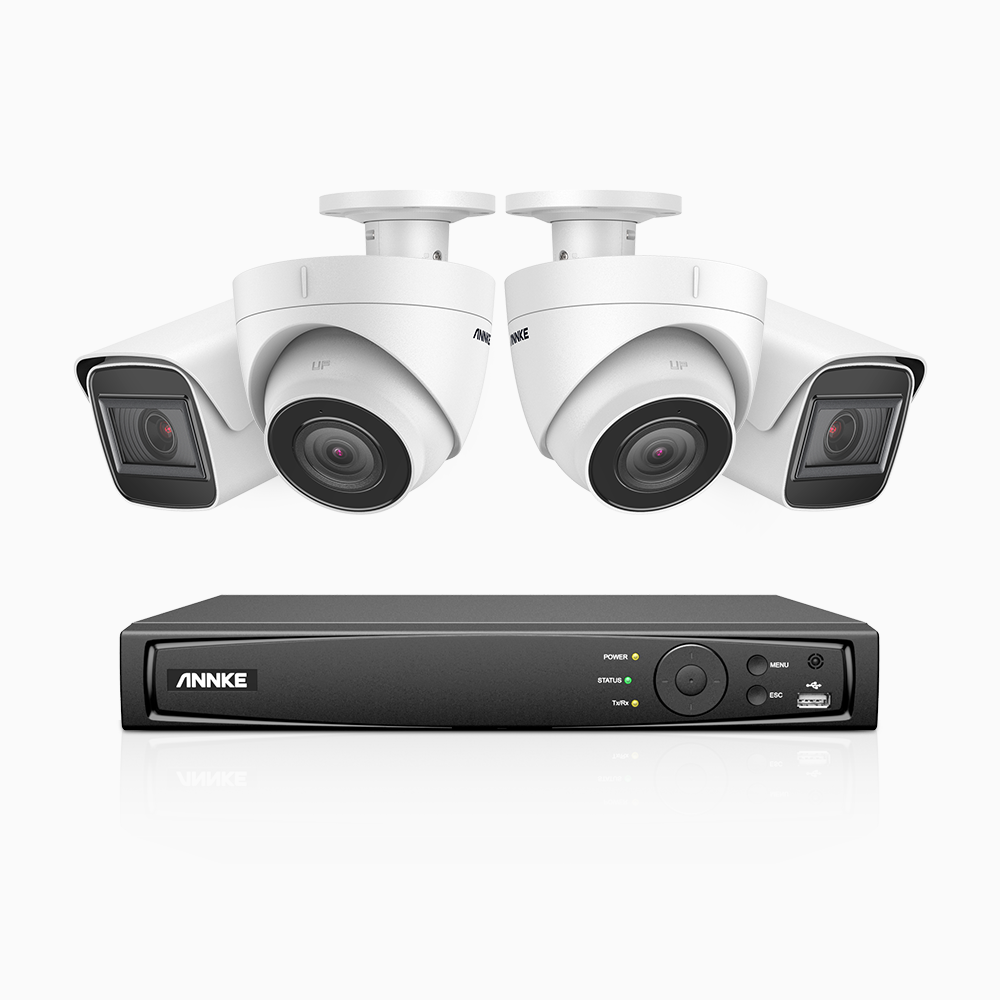 H800 - Kit de vigilancia PoE 4K con 2 cámaras bullet y 2 cámaras domo y videograbador NVR de 8 canales, Visión nocturna a color e infrarrojos, detección de humanos y vehículos, micrófono integrado, ángulo de visión 96º