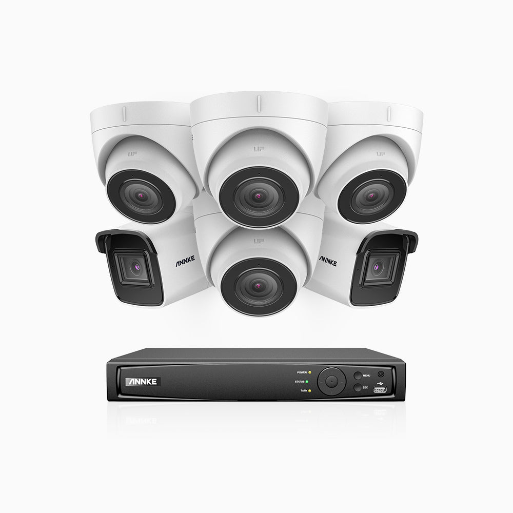 H800 - Kit de vigilancia PoE 4K con 2 cámaras bullet y 4 cámaras domo y videograbador NVR de 8 canales, Visión nocturna a color e infrarrojos, detección de humanos y vehículos, micrófono integrado, ángulo de visión 96º