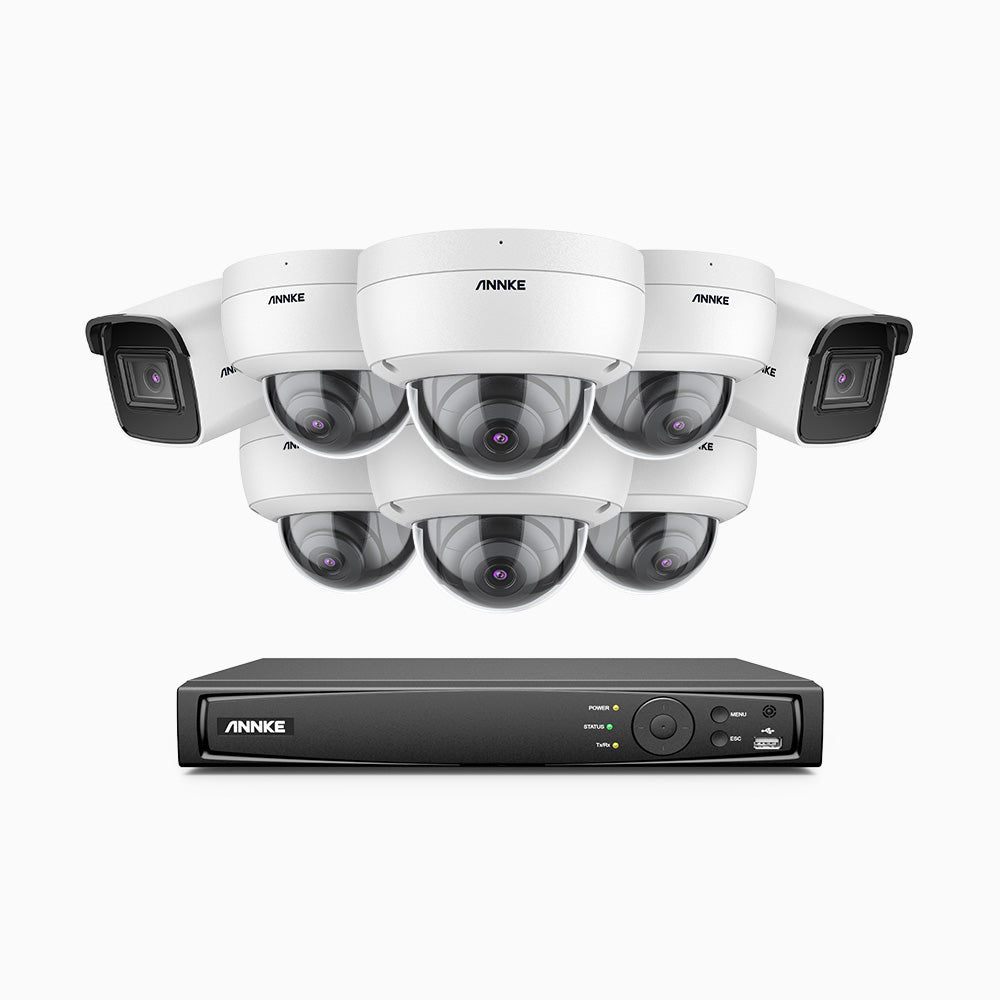 H800 - Kit de vigilancia PoE 4K con 2 cámaras bullet y 6 cámaras domo (antivándalica IK10) y videograbador NVR de 16 canales, Visión nocturna a color e infrarrojos, detección de humanos y vehículos, micrófono integrado, ángulo de visión 96º