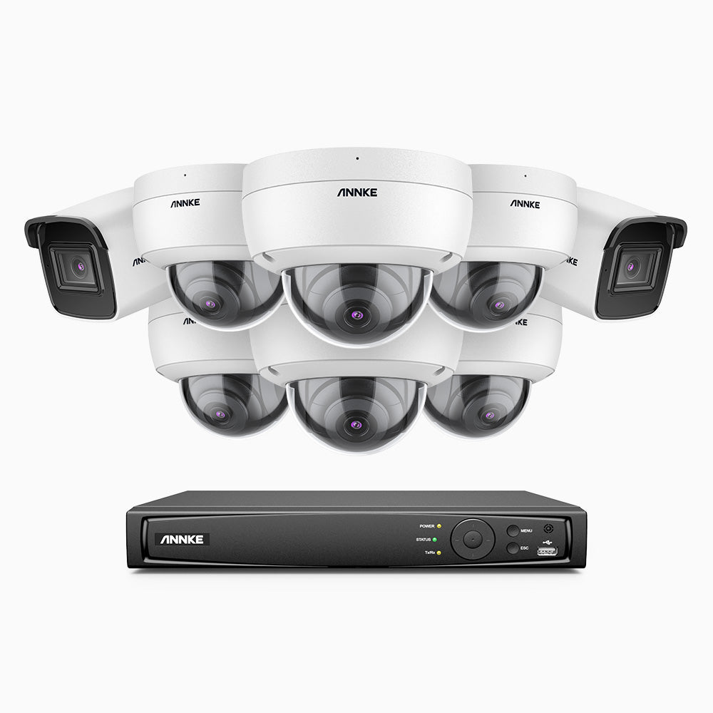 H800 - Kit de vigilancia PoE 4K con 2 cámaras bullet y 6 cámaras domo (antivándalica IK10) y videograbador NVR de 8 canales, Visión nocturna a color e infrarrojos, detección de humanos y vehículos, micrófono integrado, ángulo de visión 96º