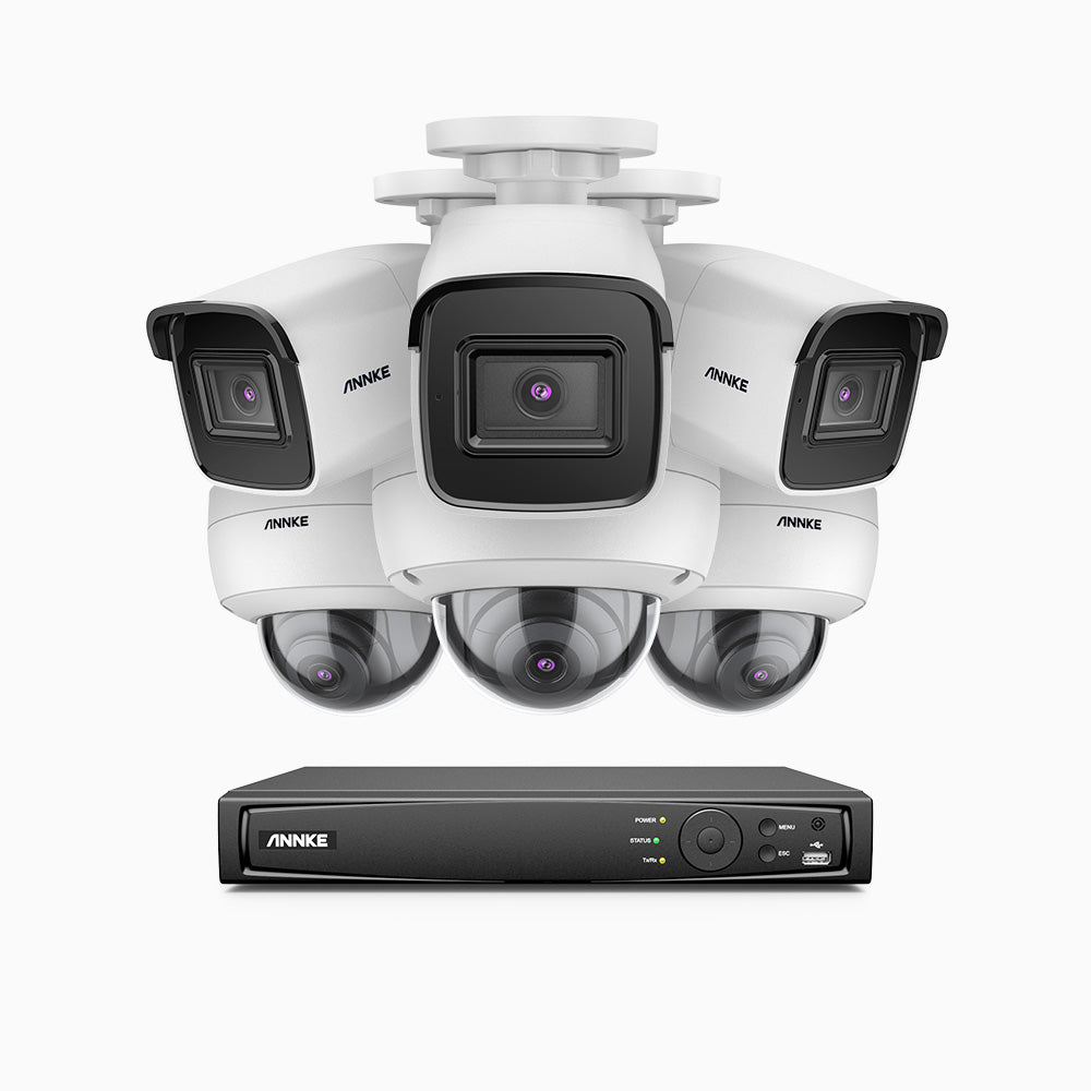 H800 - Kit de vigilancia PoE 4K con 3 cámaras bullet y 3 cámaras domo (antivándalica IK10) y videograbador NVR de 16 canales, Visión nocturna a color e infrarrojos, detección de humanos y vehículos, micrófono integrado, ángulo de visión 96º