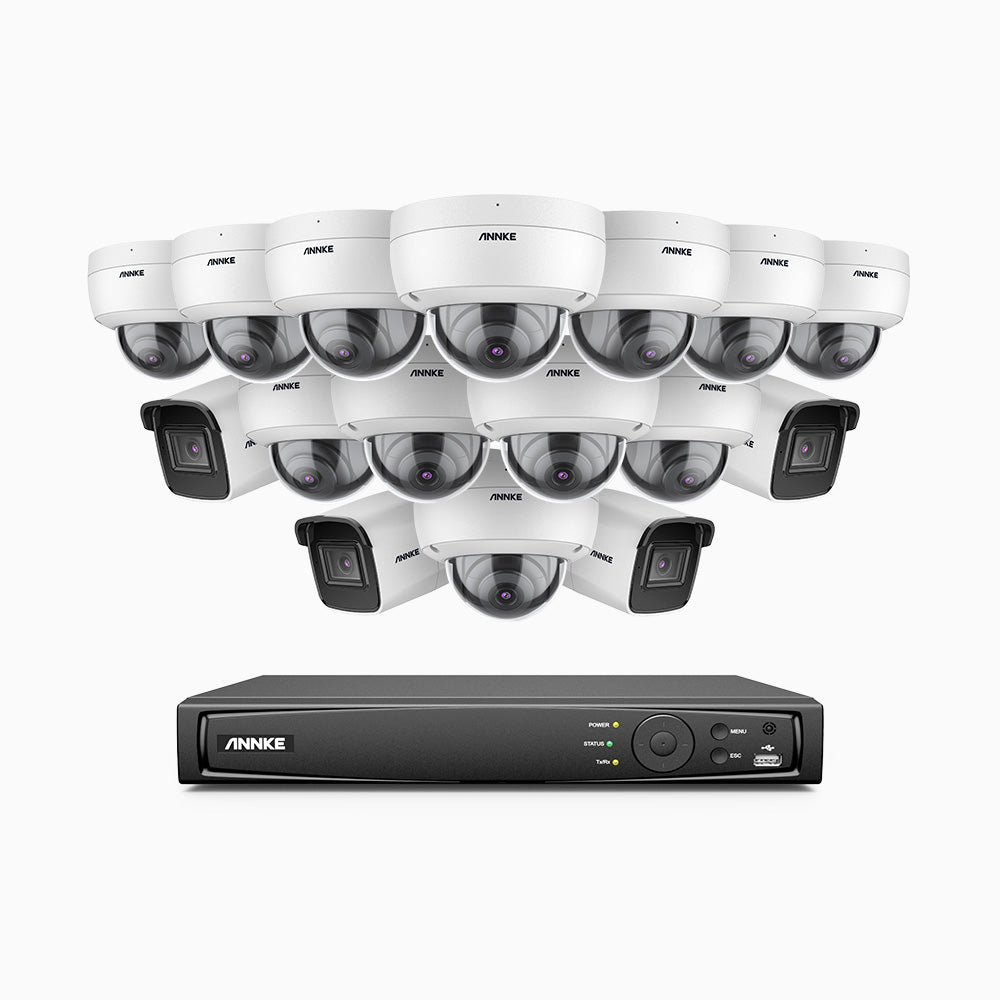 H800 - Kit de vigilancia PoE 4K con 4 cámaras bullet y 12 cámaras domo (antivándalica IK10) y videograbador NVR de 16 canales, Visión nocturna a color e infrarrojos, detección de humanos y vehículos, micrófono integrado, ángulo de visión 96º