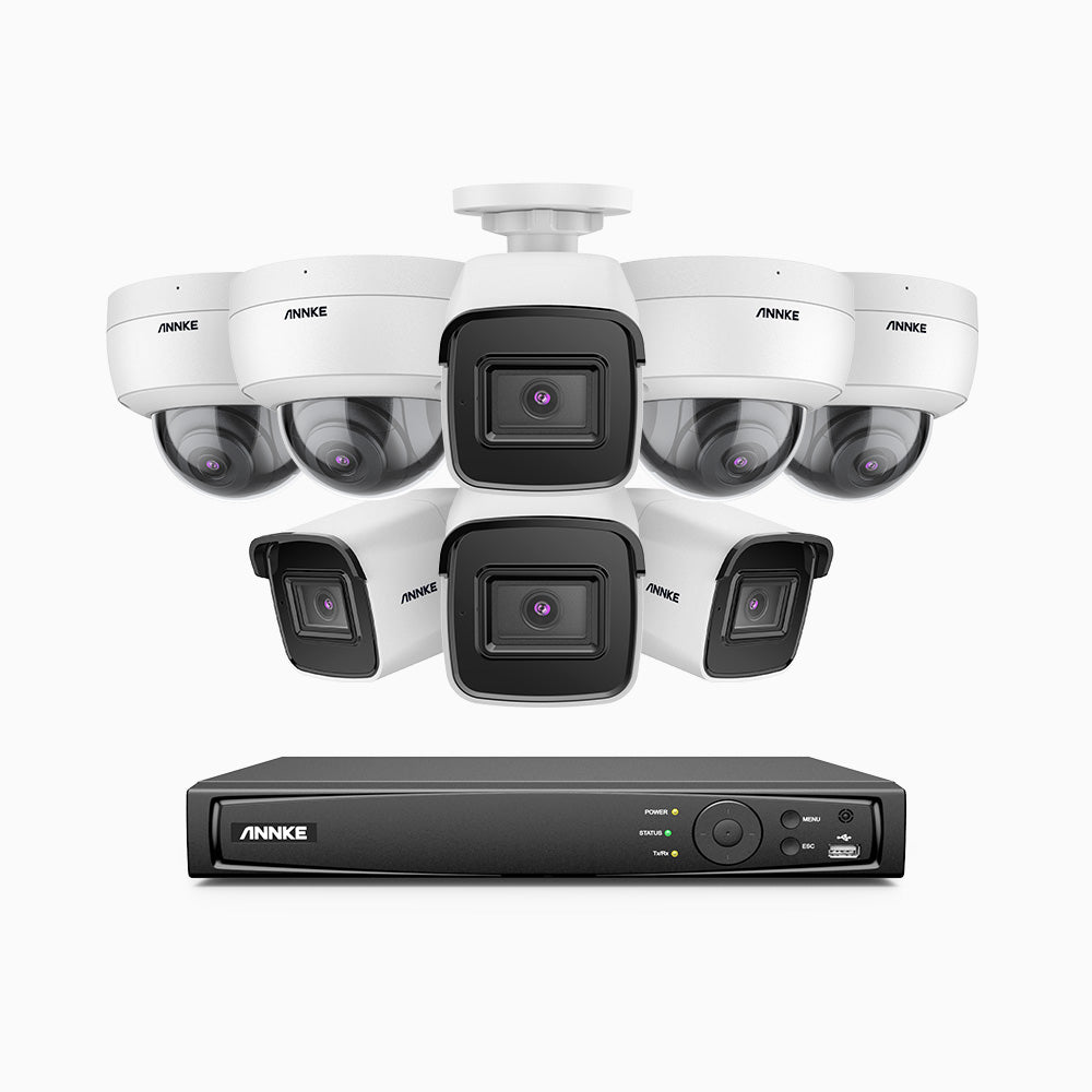 H800 - Kit de vigilancia PoE 4K con 4 cámaras bullet y 4 cámaras domo (antivándalica IK10) y videograbador NVR de 16 canales, Visión nocturna a color e infrarrojos, detección de humanos y vehículos, micrófono integrado, ángulo de visión 96º