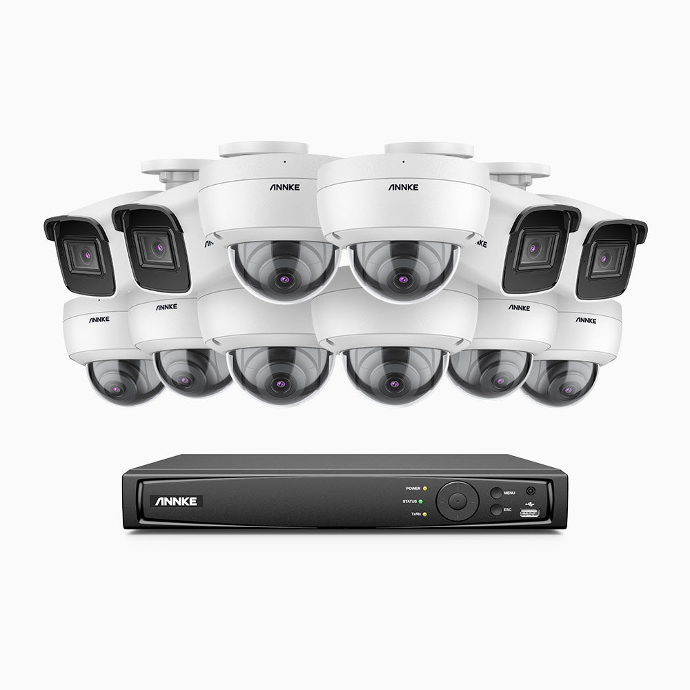 H800 - Kit de vigilancia PoE 4K con 4 cámaras bullet y 8 cámaras domo (antivándalica IK10) y videograbador NVR de 16 canales, Visión nocturna a color e infrarrojos, detección de humanos y vehículos, micrófono integrado, ángulo de visión 96º