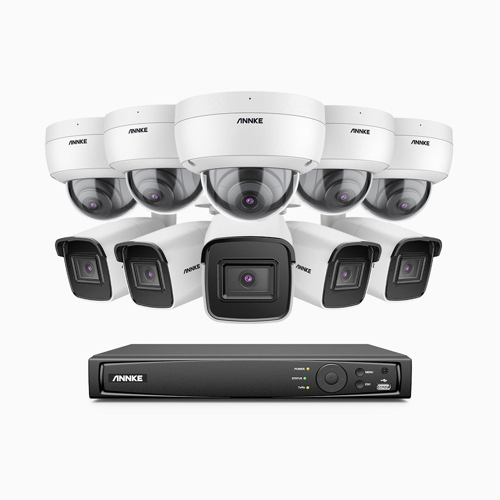 H800 - Kit de vigilancia PoE 4K con 5 cámaras bullet y 5 cámaras domo (antivándalica IK10) y videograbador NVR de 16 canales, Visión nocturna a color e infrarrojos, detección de humanos y vehículos, micrófono integrado, ángulo de visión 96º