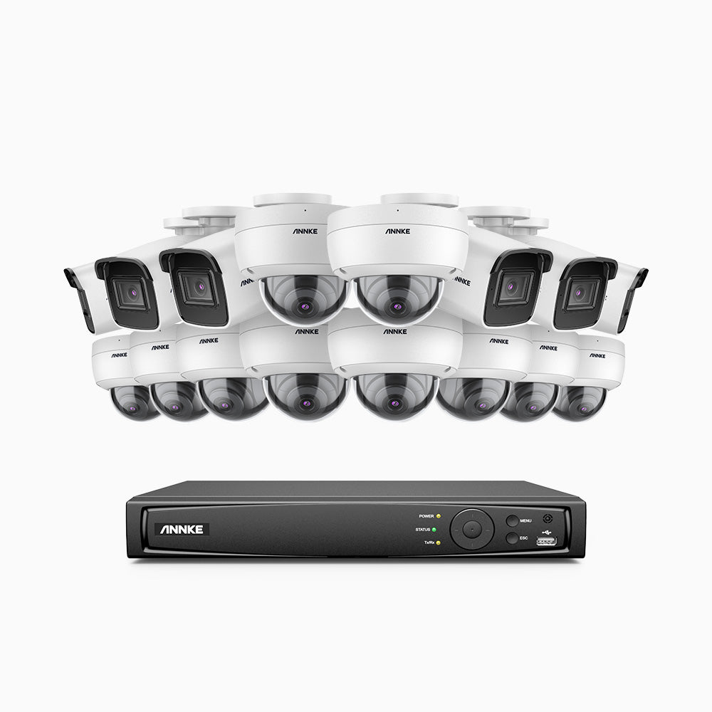 H800 - Kit de vigilancia PoE 4K con 6 cámaras bullet y 10 cámaras domo (antivándalica IK10) y videograbador NVR de 16 canales, Visión nocturna a color e infrarrojos, detección de humanos y vehículos, micrófono integrado, ángulo de visión 96º