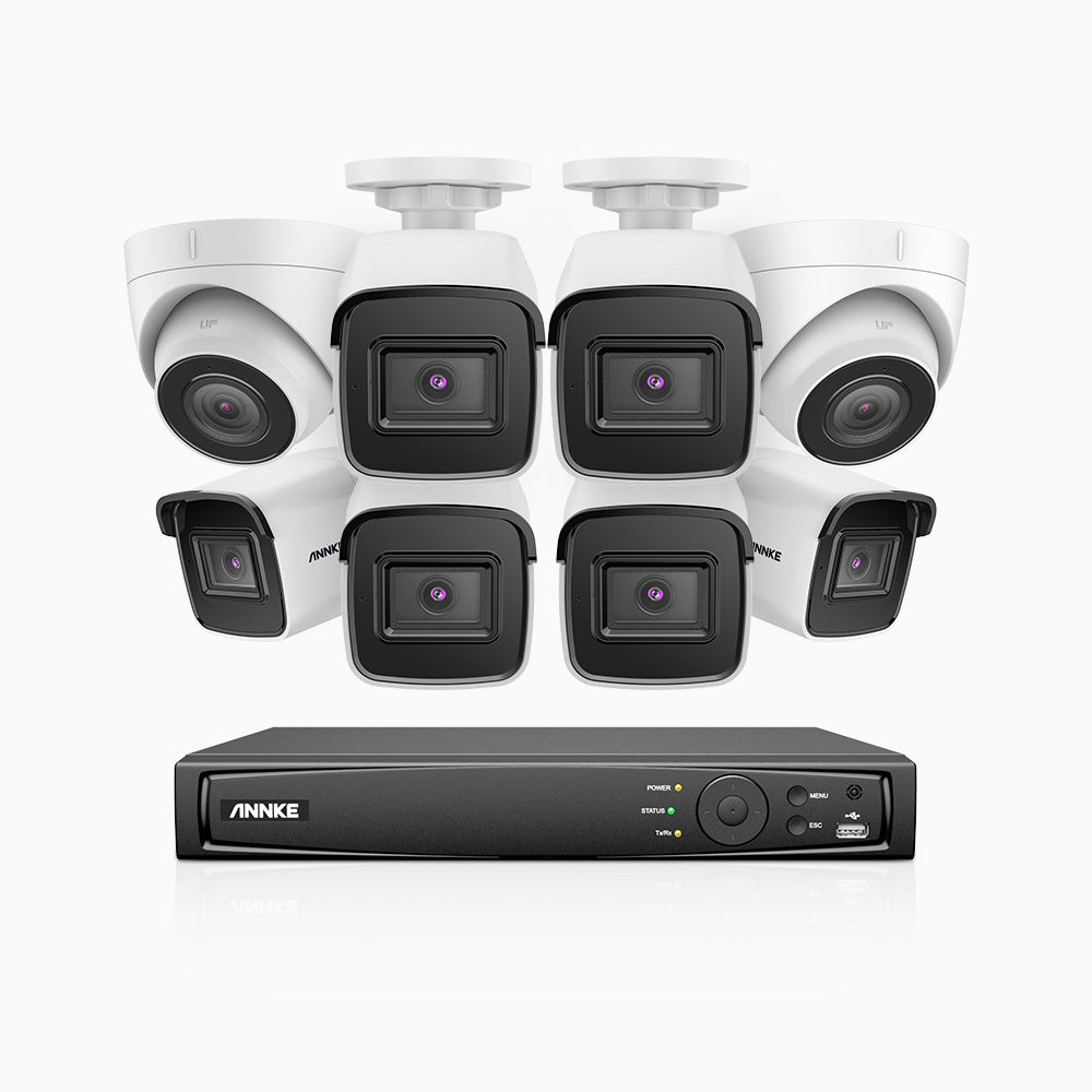 H800 - Kit de vigilancia PoE 4K con 6 cámaras bullet y 2 cámaras domo y videograbador NVR de 16 canales, Visión nocturna a color e infrarrojos, detección de humanos y vehículos, micrófono integrado, ángulo de visión 96º
