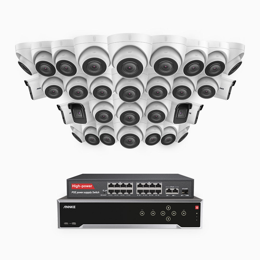 H800 - Kit de vigilancia PoE 4K con 6 cámaras bullet y 26 cámaras domo y videograbador NVR de 32 canales, Visión nocturna a color e infrarrojos, detección de humanos y vehículos, micrófono integrado, ángulo de visión 96º