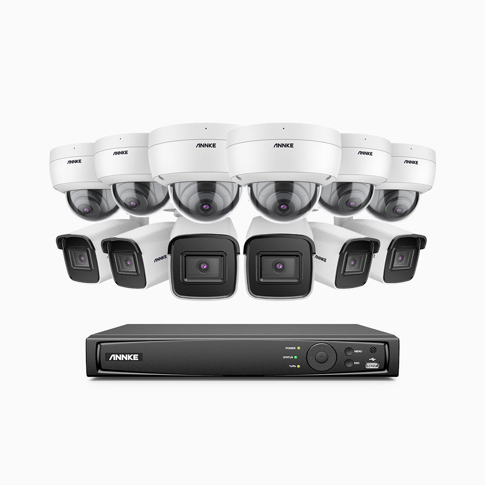 H800 - Kit de vigilancia PoE 4K con 6 cámaras bullet y 6 cámaras domo (antivándalica IK10) y videograbador NVR de 16 canales, Visión nocturna a color e infrarrojos, detección de humanos y vehículos, micrófono integrado, ángulo de visión 96º