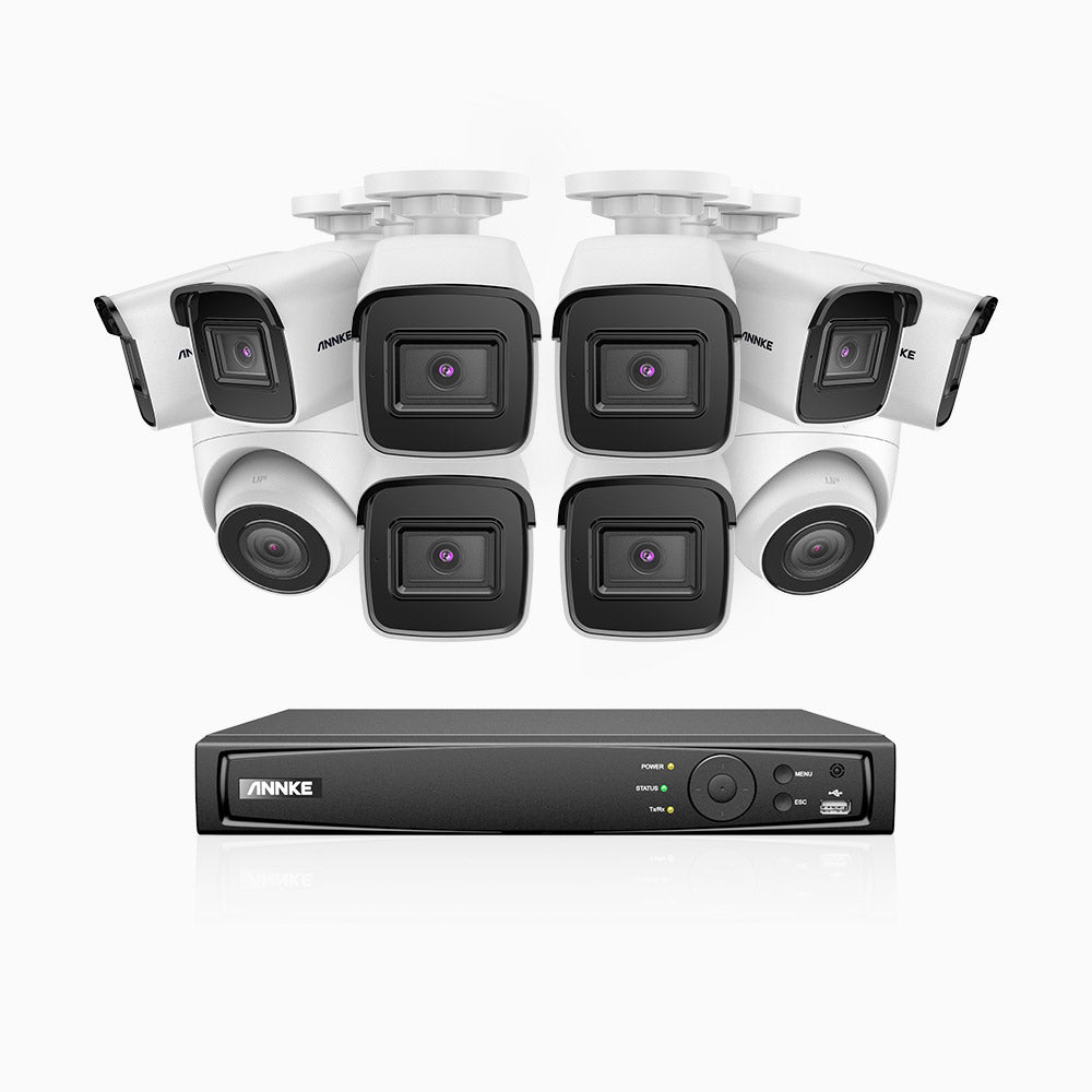 H800 - Kit de vigilancia PoE 4K con 8 cámaras bullet y 2 cámaras domo y videograbador NVR de 16 canales, Visión nocturna a color e infrarrojos, detección de humanos y vehículos, micrófono integrado, ángulo de visión 96º