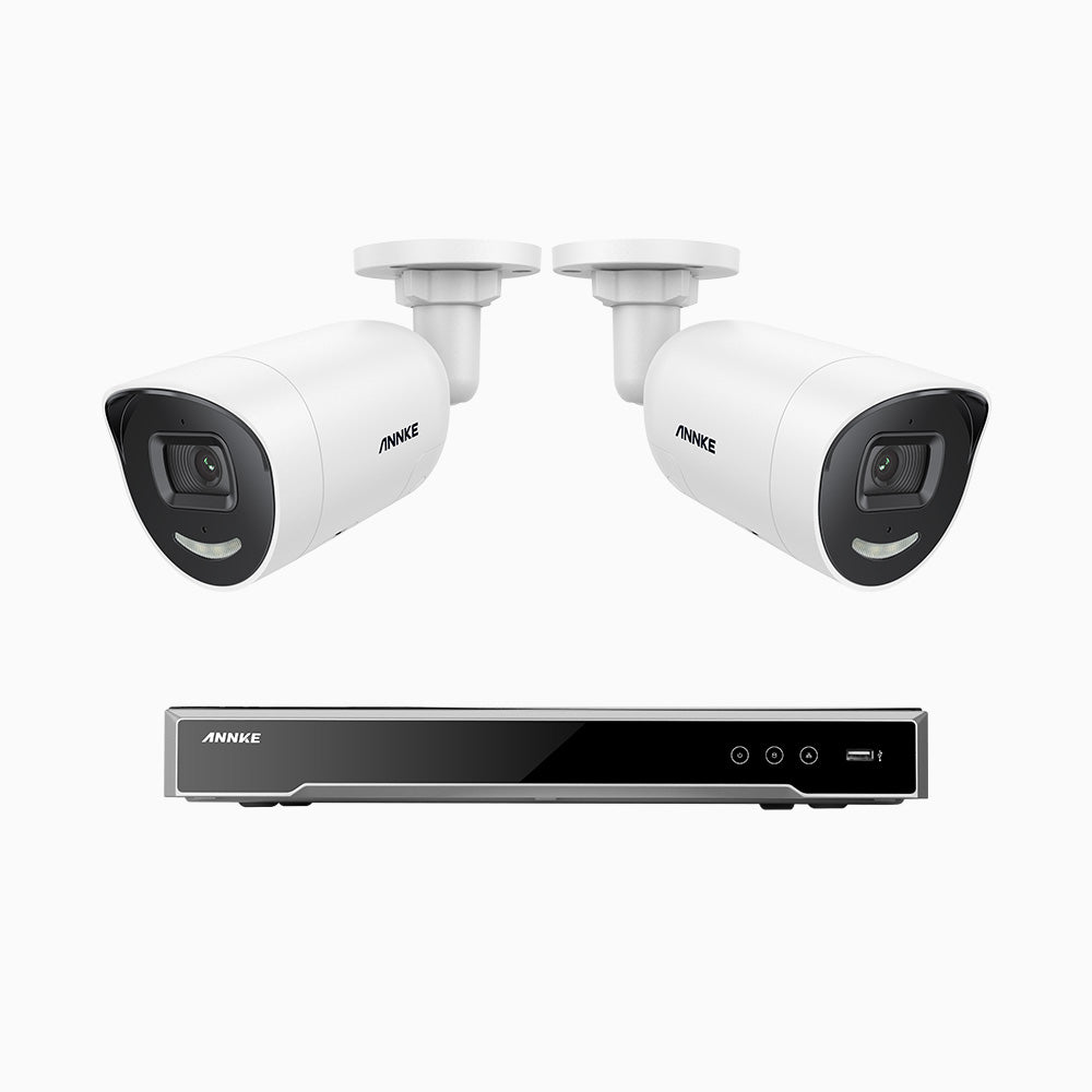 H800X - Kit de 2 cámaras de vigilancia PoE de 4K con videograbador NVR de 8 canales, apertura f/1,6 (0,003 Lux), alarma de sirena y estroboscópica, audio bidireccional, detección de personas y vehículos, protección del perímetro, funciona con Alexa
