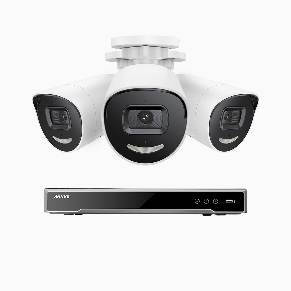 H800X - Kit de 3 cámaras de vigilancia PoE de 4K con videograbador NVR de 8 canales, apertura f/1,6 (0,003 Lux), alarma de sirena y estroboscópica, audio bidireccional, detección de personas y vehículos, protección del perímetro, funciona con Alexa