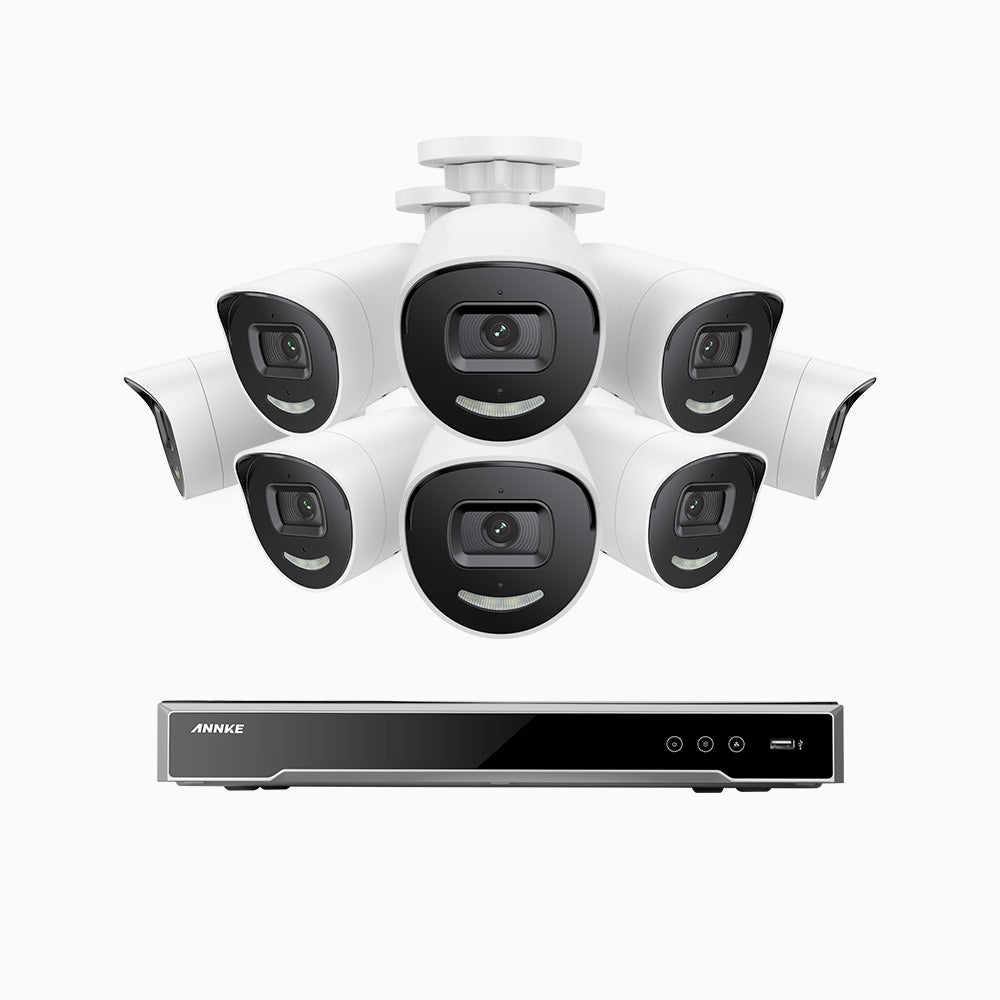 H800X - Kit de 8 cámaras de vigilancia PoE de 4K con videograbador NVR de 8 canales, apertura f/1,6 (0,003 Lux), alarma de sirena y estroboscópica, audio bidireccional, detección de personas y vehículos, protección del perímetro, funciona con Alexa