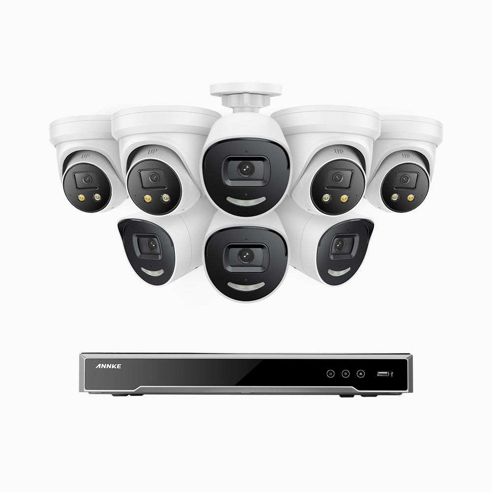 H800X - Kit de vigilancia PoE de 4K con 4 cámara bullet y 4 cámaras domo y videograbador NVR de 16 canales, alarma de sirena y estroboscópica, audio bidireccional, detección de personas y vehículos, protección del perímetro, funciona con Alexa