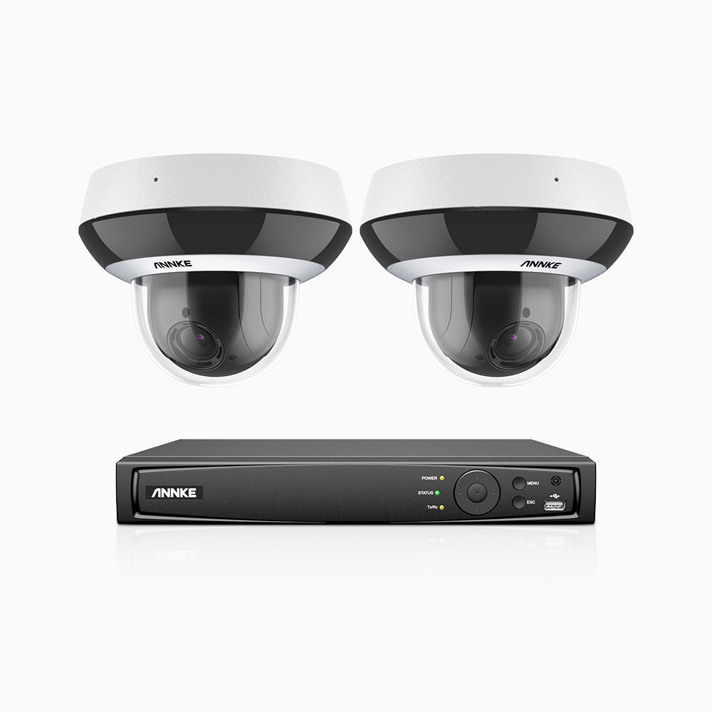 HZ504P - 8 Channel 2 Camera PTZ PoE Security System, 3K Super HD, 4X Optical Zoom, IK10 & IP67, 2.8-12 mm Lens, Intelligent Behavior Analysis, Color Night Vision & Anti-Fog
