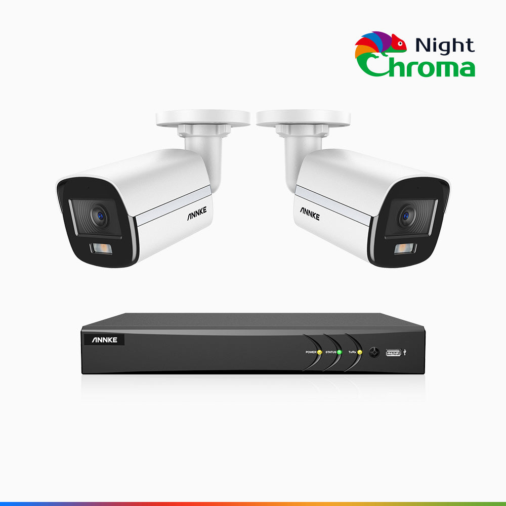 NightChroma<sup>TM</sup> NAK500 - Kit de 2 cámara de vigilancia TVI 3K con grabador de 8 canales, Acme Visión Nocturna a Color, Resolución de 2960 × 1665, Apertura f/1.0 (0.001 Lux), Micrófono Incorporado, IP67, Versión Actualizada