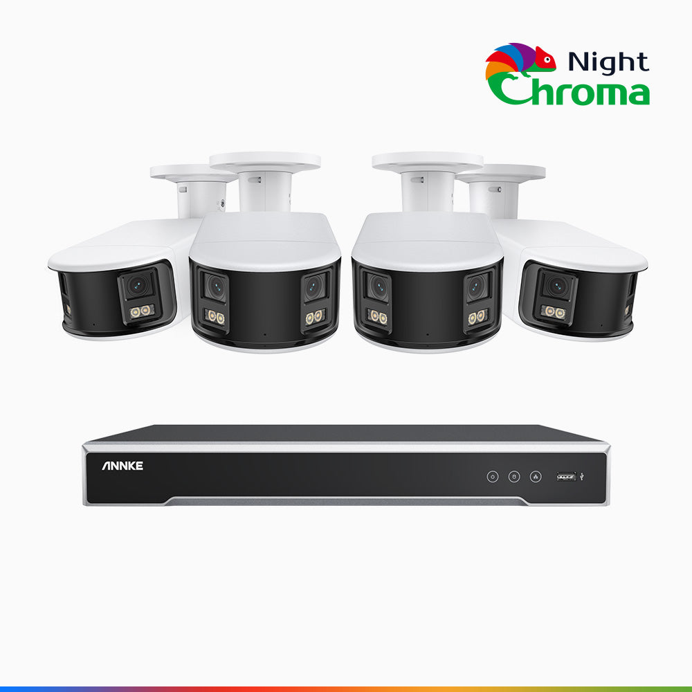 NightChromaTM NDK800 – Kit de 4 cámaras de vigilancia PoE de 4K con videograbador NVR de 8 canales, panorámica doble lente, visión nocturna en color, detección de humanos y vehículos, análisis de comportamiento inteligente