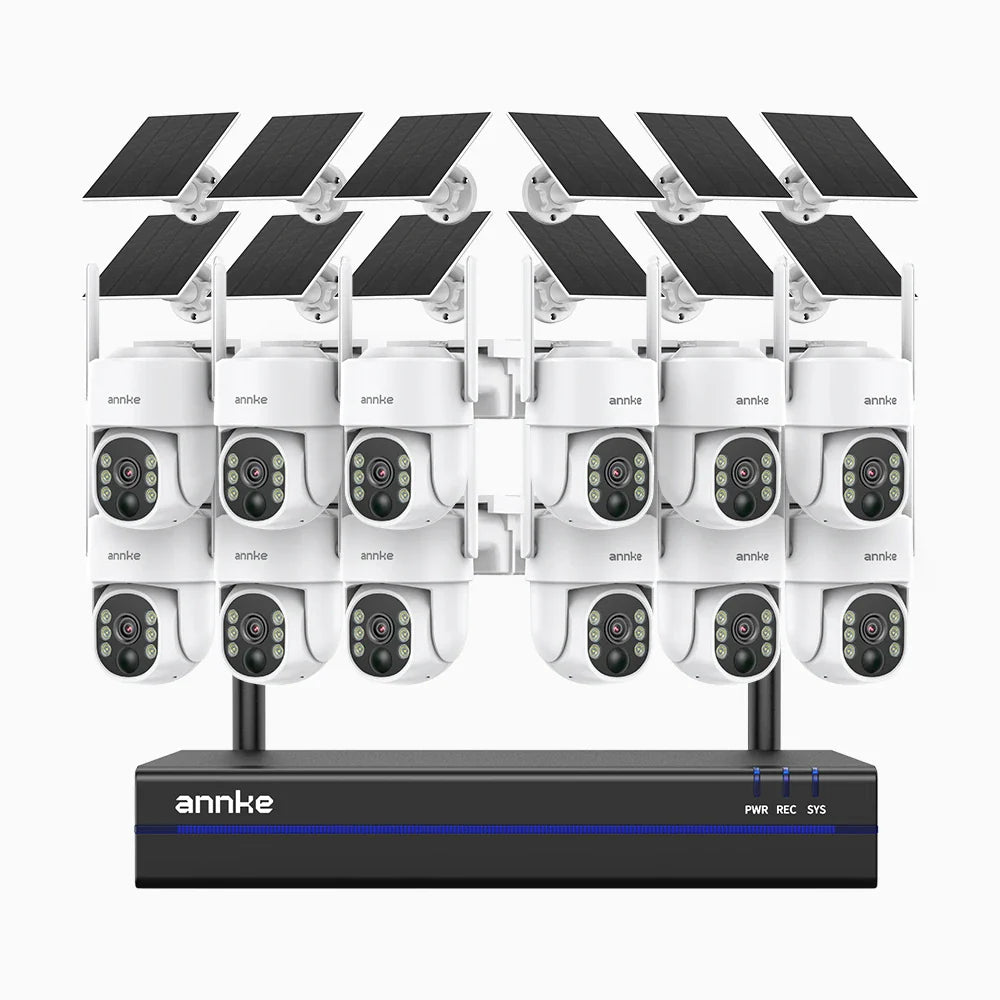 WBS400 - Kit de 12 cámaras de vigilancia inalámbrico de 4MP con videograbador NVR de 16 canales, WiFi bi-bande, détection mouvement, audio bidirectionnel, alimenté par batterie et énergie solaire, 270° Pan & 90° Tilt, compatible avec Alexa
